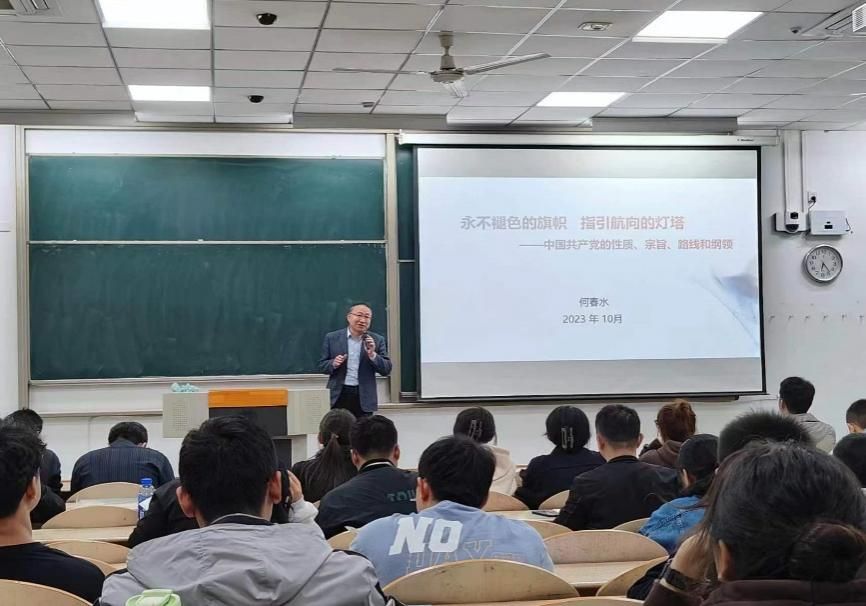 何春水老师以“永不褪色的旗帜,指引航向的灯塔”为题,系统讲授了中国共产党的性质、宗旨、路线和纲领,重点介绍了什么是政党、什么是共产党和青年学生的历史责任和担当等方面的知识,让学员们对中国共产党有了更加全面深刻的认识,进一步坚定了理想信念。