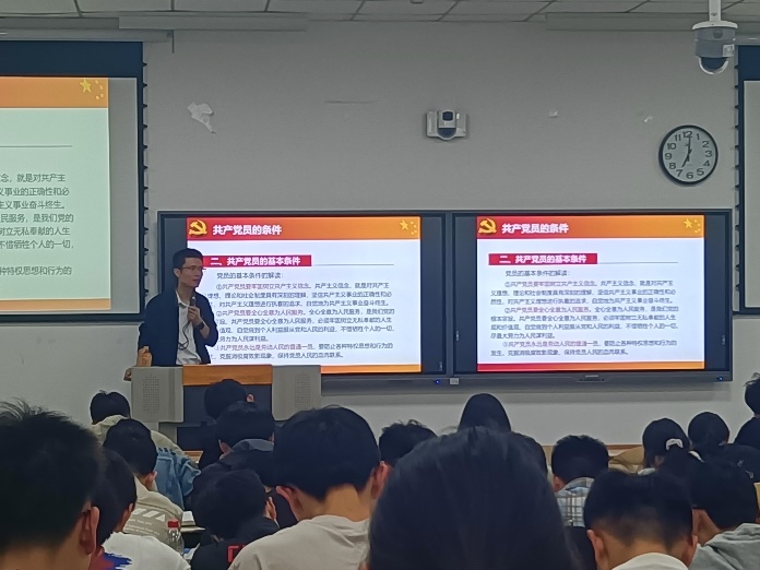 赵老师以“共产党员的条件”为主题,讲解了成为共产党员所需的基本条件,入党积极分子的选拔、培养和考察流程,以及大学生入党的具体步骤。