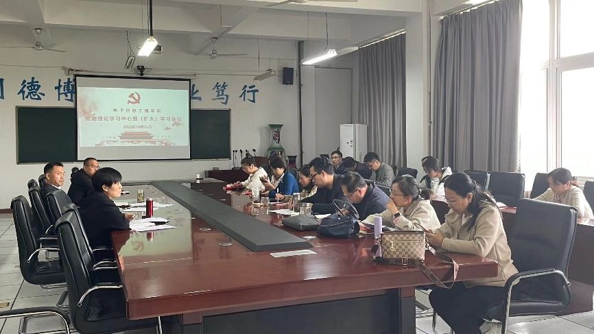 在教5-424召开党委理论学习中心组(扩大)学习会议。学院领导班子成员、党委委员、纪委委员、党支部书记及全体辅导员参加学习,会议由院党委书记易超主持。