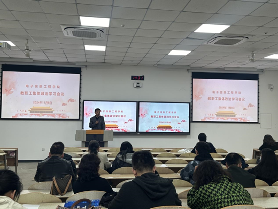在教2-105召开教职工集体政治理论学习会,会议由院党委书记易超主持,全体教职工参加。