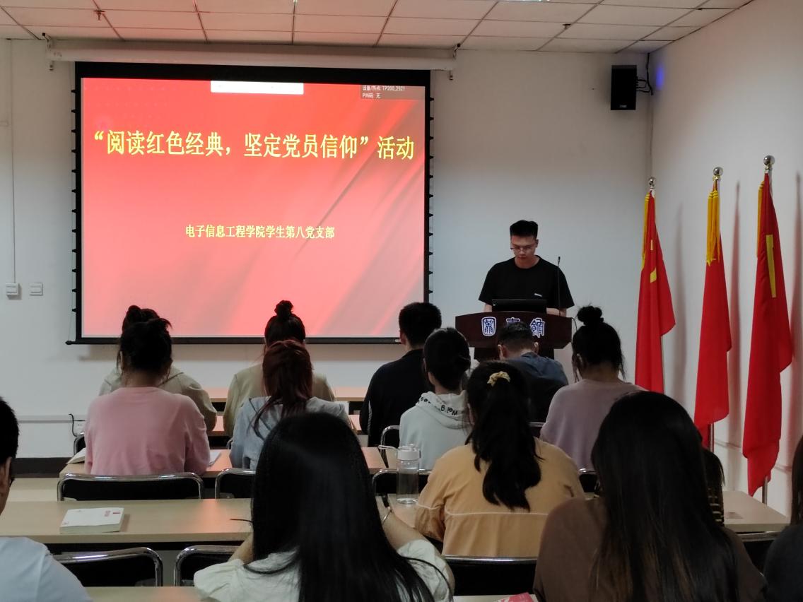 学生第八党支部在图书馆红色阅览室开展了“阅读红色经典、坚定党员信仰”红色文化书籍分享会活动,由党支部书记李彬主持,全体党员同志参加。