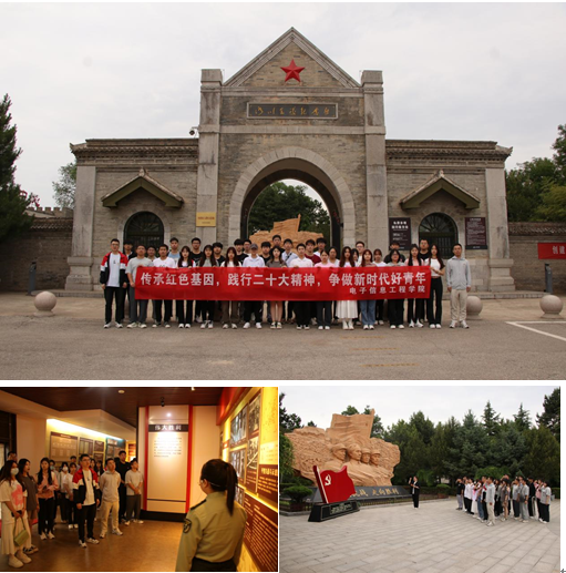 师生参观学习的第一站来到“洛川会议”旧址。在洛川县永乡镇武装部部长王曙辉的带领下,师生们参观了曾召开洛川会议的冯家村。随后,王部长在洛川会议纪念展馆中为电信师生生动讲解了洛川会议的相关史实,呈现了一幅波澜壮阔的革命历史画卷,师生们无不心生感佩。党员师生们在革命先辈的塑像集体重温了入党誓词,面向党旗庄严宣誓。