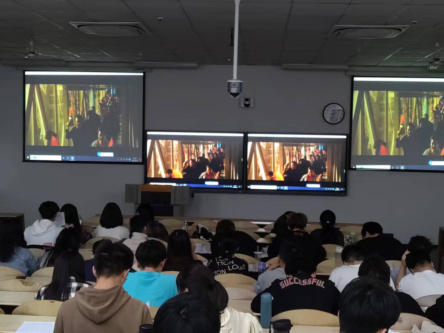 实践活动分为红色观影,思想网络云碰撞两个活动内容,组织全体学员观看了电影《万里归途》,电影以中国大使馆组织撤侨的真实事件改编,讲述了在努米亚共和国爆发战乱的情形下,中国大使馆人员全力协同解救战区同胞归国的故事。