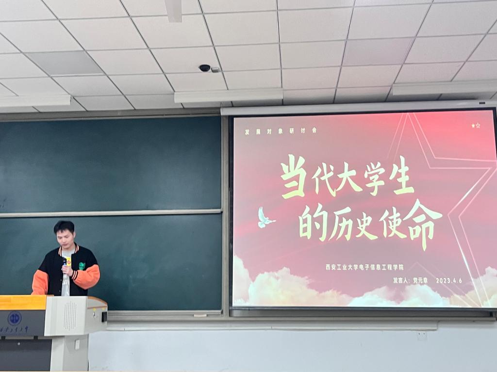 围绕“当代大学生的历史使命”、“如何讲好中国故事”两个主题,全体发展对象进行了热烈的分组交流谈论,各组代表还进行了大会交流发言。