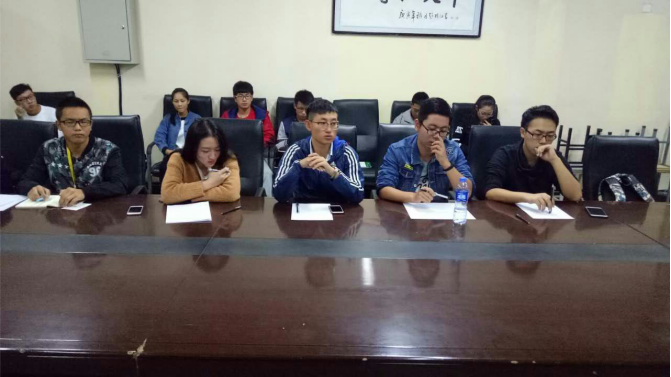 于工5-402举行了2016级迎新主持人选拔的面试工作。出席本次活动的有团委书记赵志升,团委副书记张国豪,社团联合会主席李星宇,社联秘书长邓若兰,社联外联部长石国良。