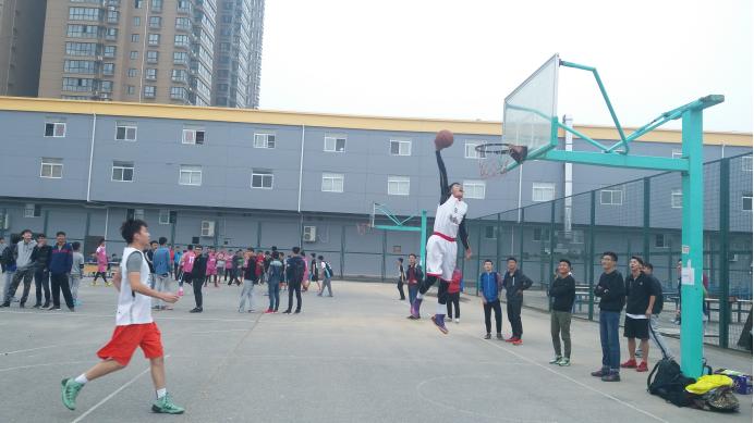 金秋十月,碧空如洗,凉爽舒适。2016年10月11日,伴着秋风,迎来了西安工业大学迎新杯篮球赛。正值中午,电信院与经管院展开了一场激烈的友谊赛。参与本次活动的有体育部部长王宏洋、副部长杨攀,生活部部长李晨阳,秘书部部长刘海涛。