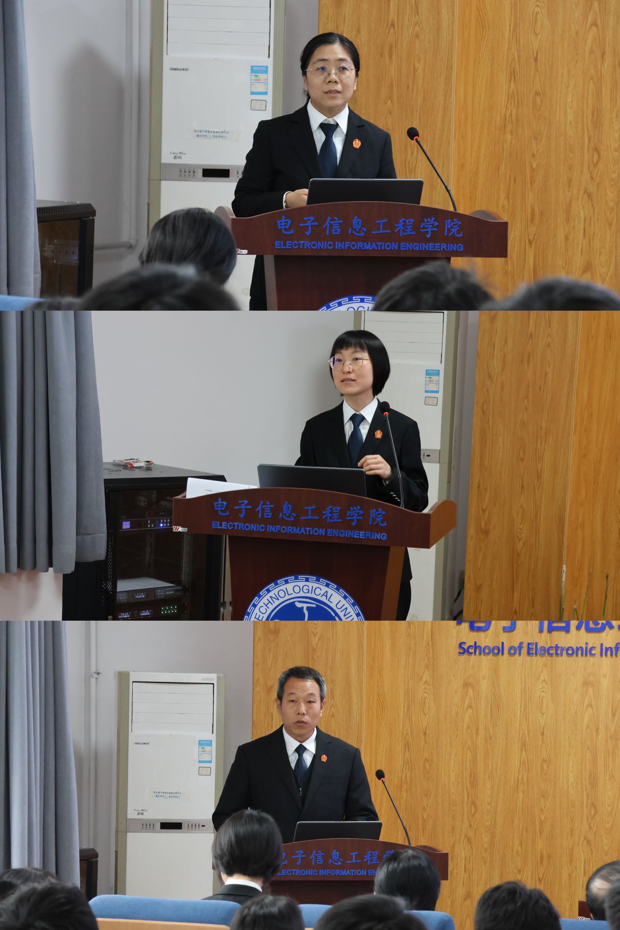 活动围绕当前大学校园热点法律问题,由法院干警分三个单元进行讲解,并进行了互动交流。首先由西铁中院环资庭四级高级法官周玲玲从当前大学校园较为盛行的登山探险讲起,以《保护秦岭生态 杜绝非法穿越》为题,对秦岭的重要性、禁止非法穿越秦岭核心保护区、非法穿越的法律责任等进行深入讲解,号召大学生从自身做起,自觉抵制非法穿越,守护大美秦岭。一级法官王一婷以《守住青春底线--大学生违法犯罪预防与警示》为题,梳理了大学生违法犯罪现状,剖析了深层原因并提出成长指引建议。四级调研员张晓邦以《大学生涉电诈案件成因及反诈建议》为题,从电信诈骗犯罪现状、大学生涉电信诈骗案件特点及成因等角度全面介绍了打击电诈犯罪的严峻形势和防范的技巧方法。