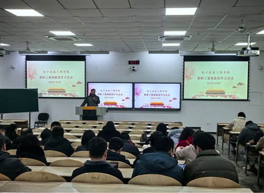 在教2-101召开教职工集体政治学习会,会议由院党委书记易超主持,全体教职工参加。
