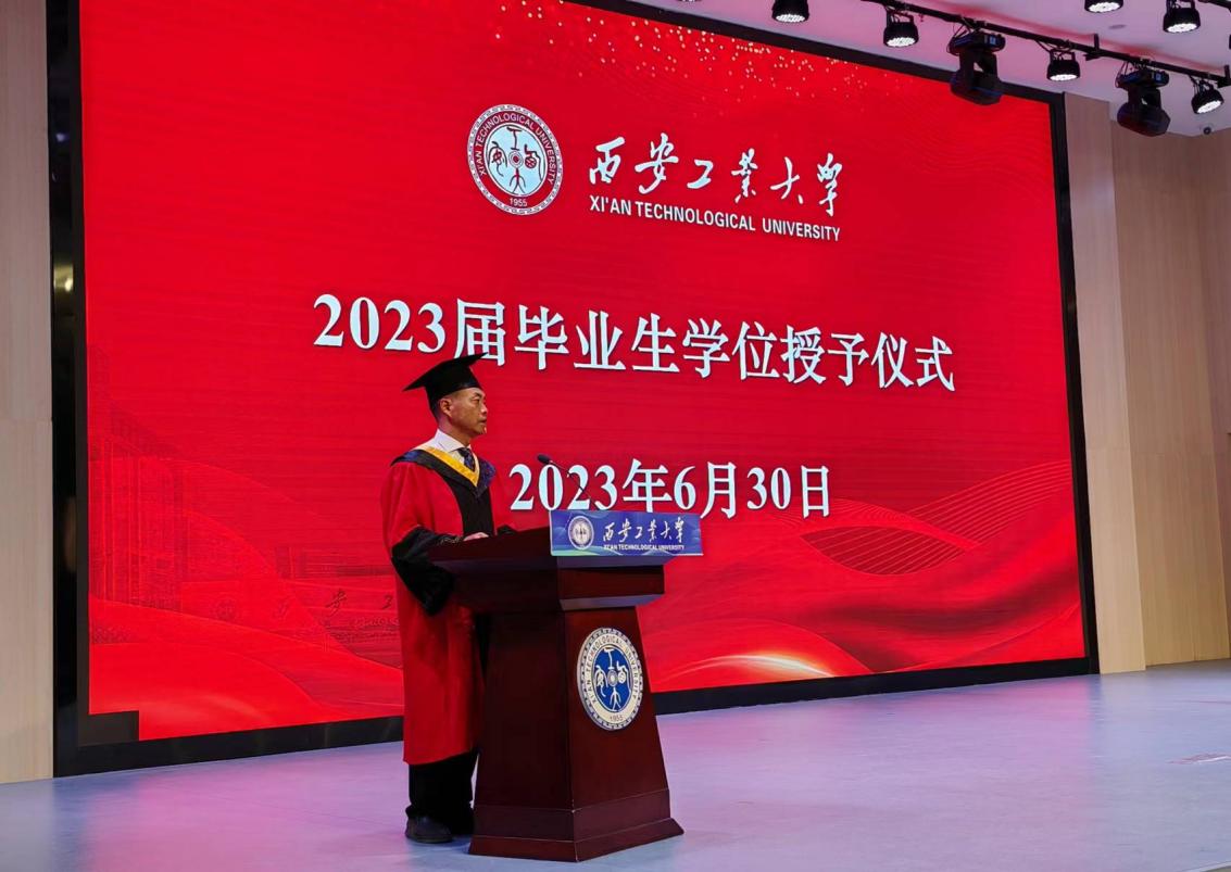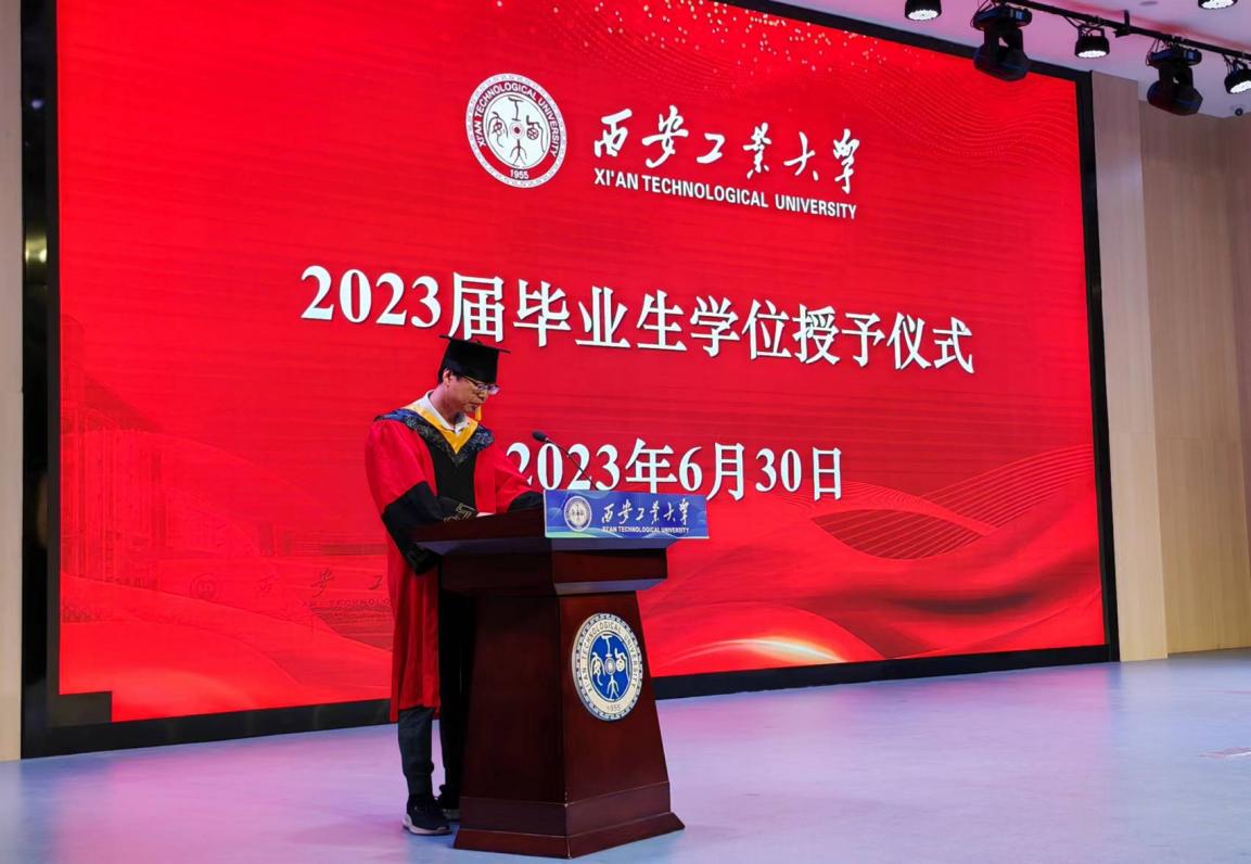 仪式在满载温馨回忆和惜别之情的毕业视频短片中拉开序幕。副院长陈超波宣读学校学位评定委员会2023届毕业生学位授予决议。院长高嵩,副院长陈超波、赵黎分别为硕士学位、学士学位获得者拨穗正冠,恭贺毕业生学业礼成。
