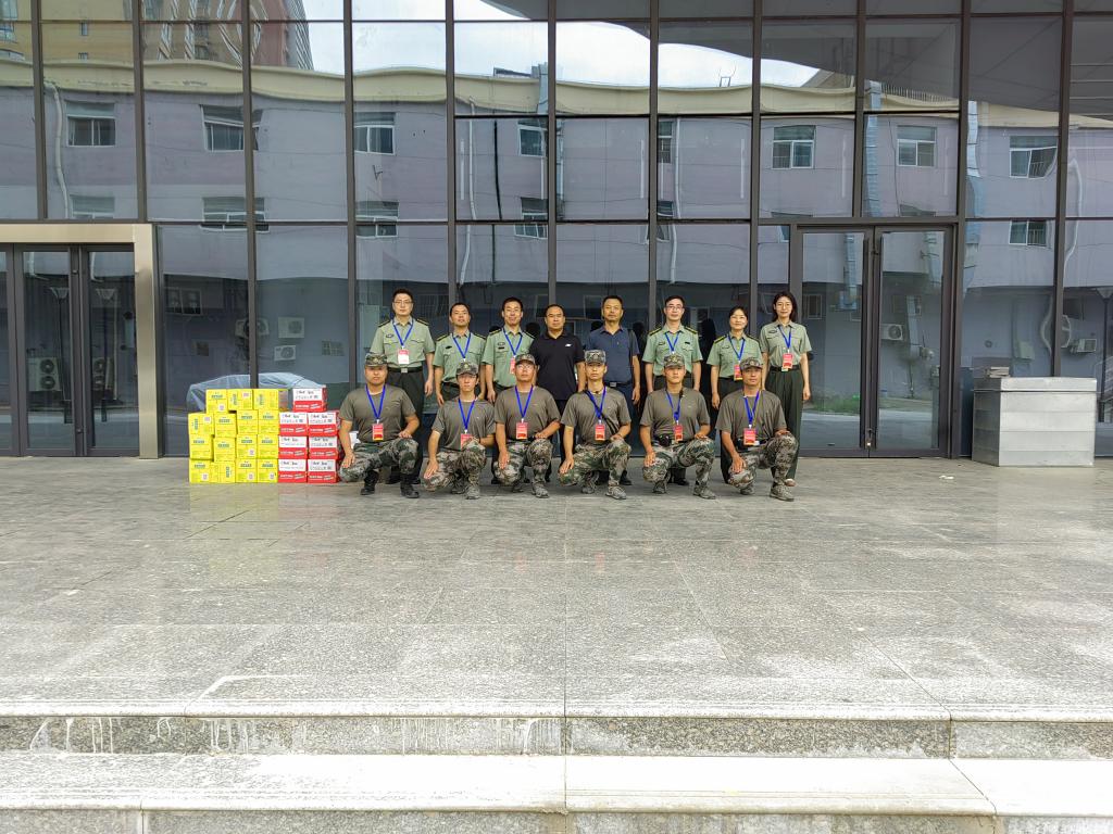 易超与教官进行亲切交流,了解学生军训的进展与状态,并对其表示感谢,同时对教官及学生们的训练成果给予充分的肯定。王利军勉励参训学生要学习军人吃苦耐劳、艰苦奋斗的精神,直面挑战的勇气和克服困难的决心,以此来磨练自己的意志,在接下来的训练中再接再厉,让军训经历成为人生中美好的回忆。希望同学们保持饱满的精神状态,将军训中养成的良好作风习惯在今后的学习生活中继续发扬。在慰问中,易超和王利军代表学院向带训连长、指导员、参训学生发放慰了问品。