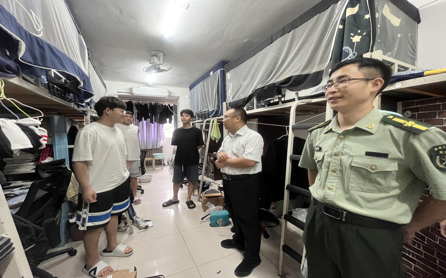 党委副书记王利军和全体辅导员于8月27日深入学生宿舍走访,开展新学期“安全卫生教育第一课”进公寓活动,同时为学生送去关怀和问候,鼓励同学们劳逸结合、加强运动、保持身心健康,新学期书写新的奋斗故事。