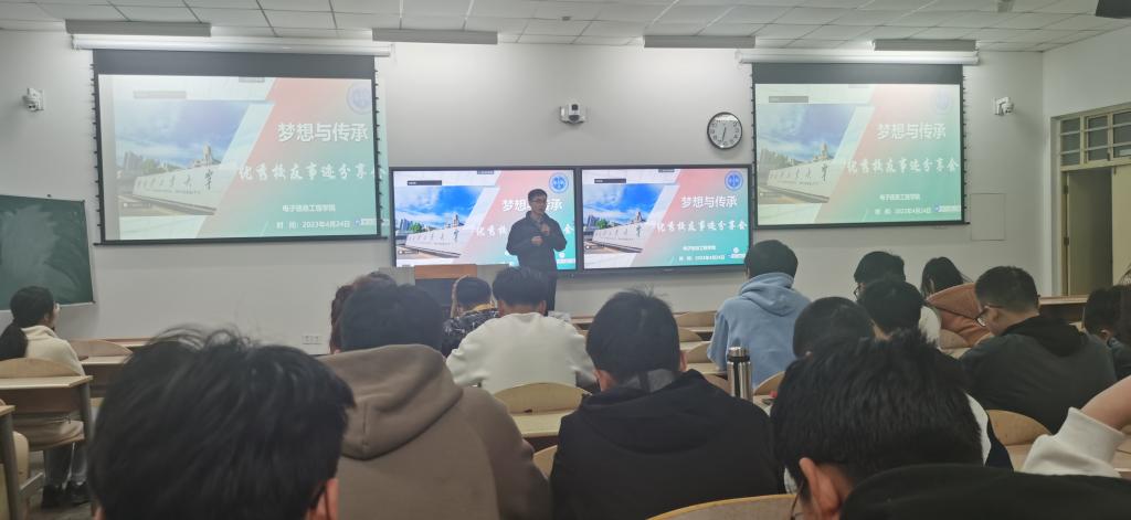 在教2-104举办了以“梦想与传承”为主题的优秀校友事迹分享会,活动邀请了3位校友进行事迹分享,辅导员夏开成主持分享会,2020级150余名学生参加。