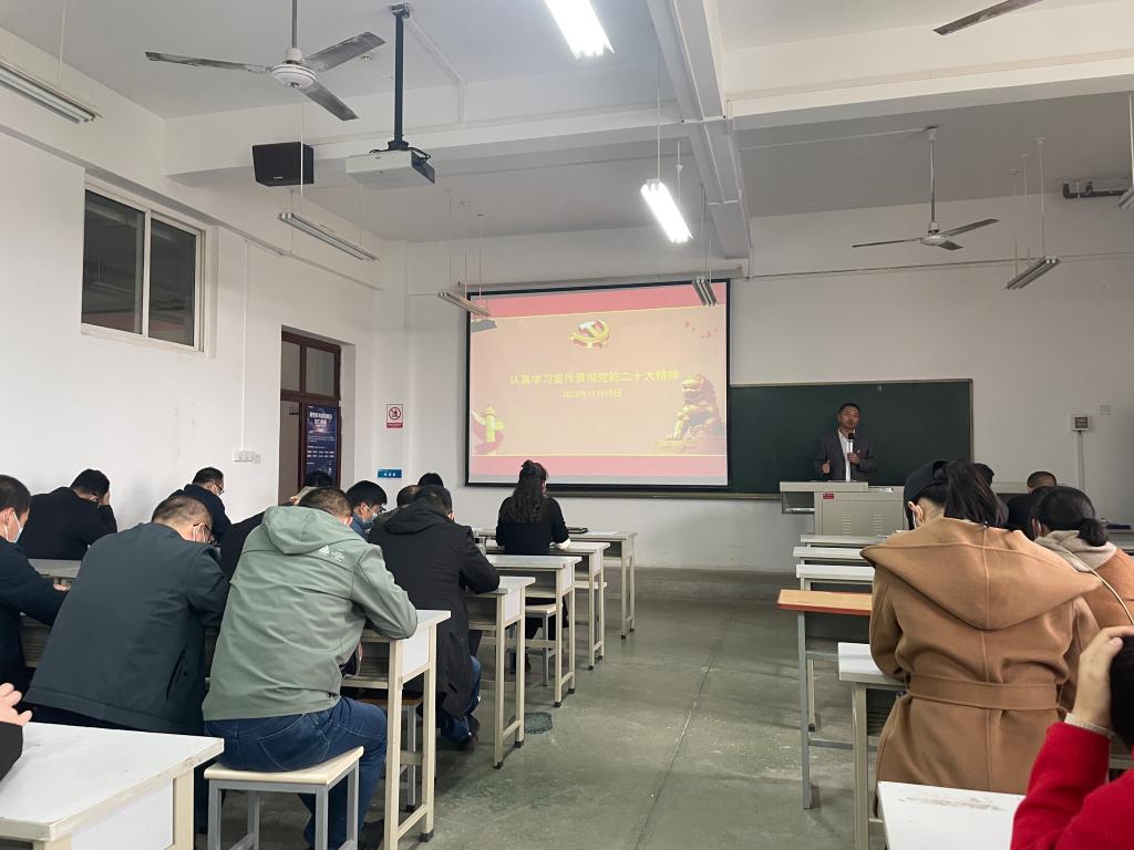 在工科5楼406室召开了学习宣传贯彻党的二十大精神教职工大会。会议由学院党委书记易超主持。
