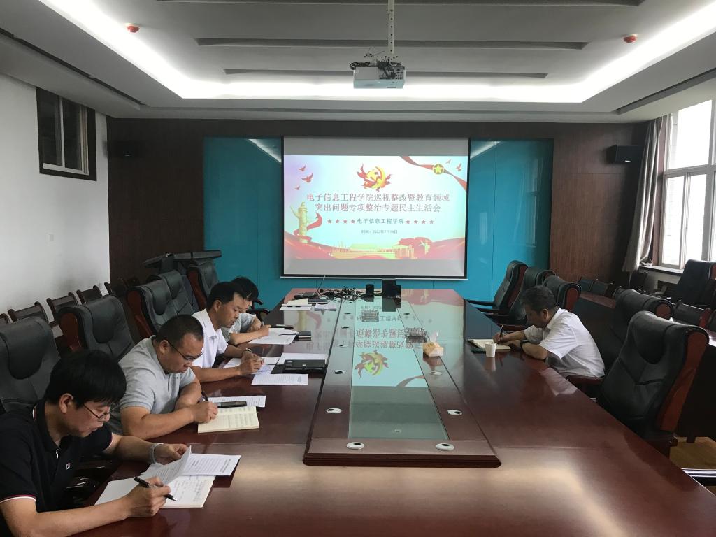 在工5-404室召开了领导班子巡视整改暨教育领域突出问题专项整治专题民主生活会。校党委副书记王军周出席会议指导工作。学院领导班子成员参加会议,会议由学院党委书记易超主持。