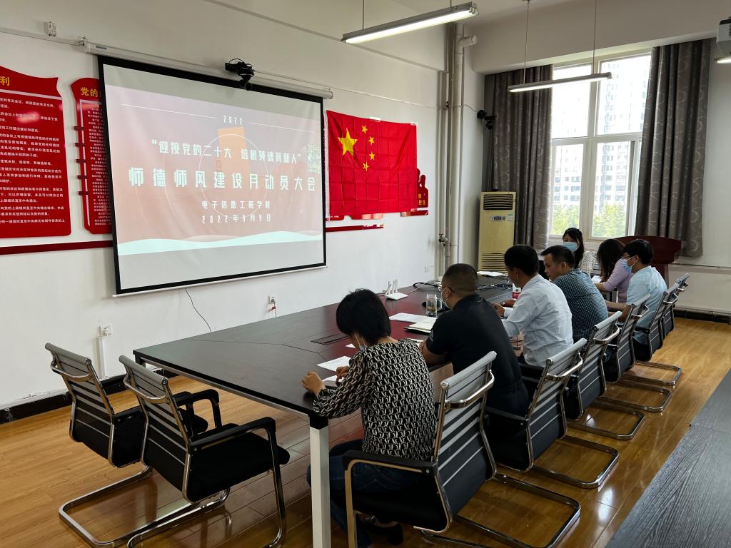 在工5-402室召开教职工大会,开展师德师风建设和纪律教育学习宣传系列活动,会议采用线上线下相结合方式,由学院党委书记易超主持,学院全体教职工参加。