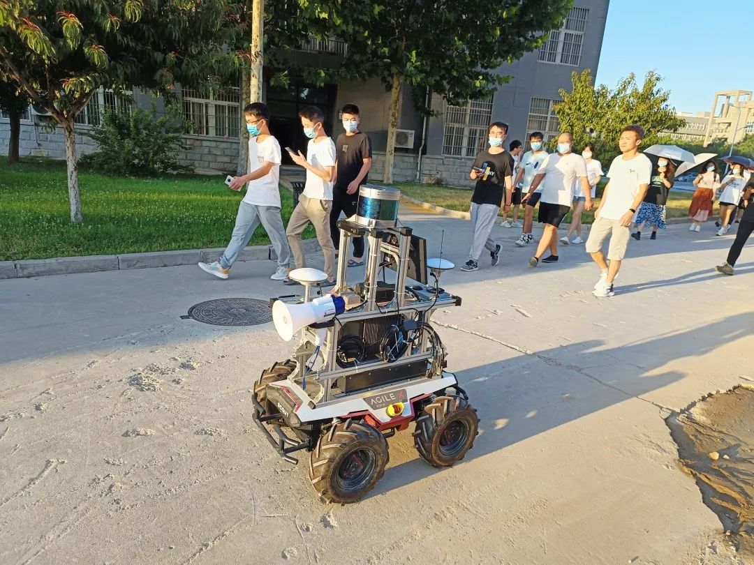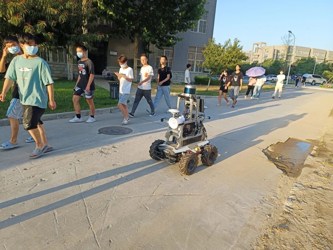 几名研究生组装完成,命名为“奋进号”。“奋进号”既可以协助维持秩序,也可以为封闭隔离人员运送物资,还可以协助进行杀毒等工作。