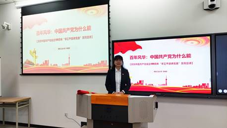 此次宣讲活动,李明芳老师主要从“百年恰是风华正茂、追寻正在红色基因、启迪最应赓续奋斗”三个方面,图文并茂,结合实例逐一讲解。通过回顾中国共产党成立100周年的光辉历程和重大历史事件,有力地回答了“中国共产党为什么能”,给同学们上了一堂生动丰富的党史教育课,并鼓励同学们勇担历史使命,坚定理想信念,脚踏实地,将青春梦融入中国梦,为实现中华民族的伟大复兴而努力奋斗。