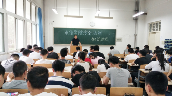 党委副书记王利军老师担任。王书记主要从四个方面内容展开进行讲解:一是从内涵上对大学生的安全进行剖析,帮助学生深刻认识人身安全、财产安全、网络安全、心理安全、交通安全等;二是围绕大学生健康成长、心理健康、社会治安形势、高校管理等内容,对大学生安全教育的必要性进行了介绍;三是结合大学生各类安全法制事例,对当前大学生所处的安全环境及特点进行了分析;四是从校园安全与防护、社会生活安全与防护,结合大学生学习、生活、就业、外出等多方面,对大学生安全与防护的方法与途径进行了详细介绍。