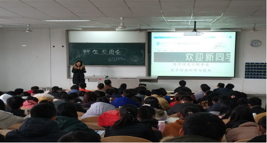 12月7日,电子信息工程专业与电子信息科学与技术专业召开了新生见面会,参加会议的有学院副书记王利军、系主任(专业负责人)任安虎、副主任赵黎、辅导员毛琳、教师班主任张宁超、朱楠、王宾和3位优秀的高年级学生代表及两个专业的全体大一同学。