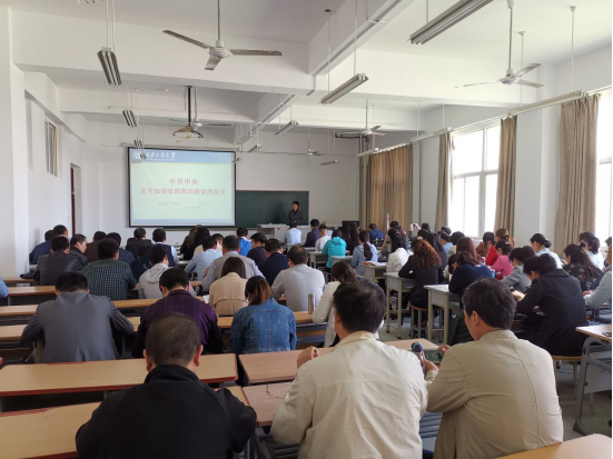 会上,张书记围绕加强党的政治建设,从坚持用党的科学理论武装头脑、坚定执行党的政治路线、坚决站稳政治立场、坚决做到“两个维护”、完善党的领导体制、发挥群团组织政治作用等二十个方面,理论联系实际,对《意见》内容进行了全面深入的阐释。并就《意见》的贯彻落实提出要求,强调要以更高的站位、更实的举措、更强的担当抓落实,切实把思想和行动统一到以习近平同志为核心的党中央决策部署上来,更加自觉地把党的政治建设摆在首要位置,认真谋划教育教学、日常工作中政治建设的思路举措,确保《意见》提出的各项举措落到实处、取得实效,以政治上的加强推动全面从严治党向纵深发展。