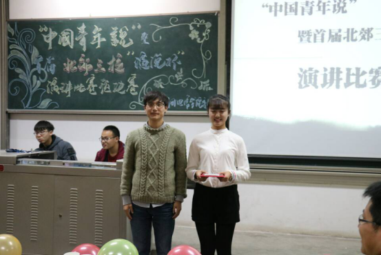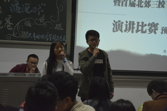 晚上6时许,“中国青年说”首届北郊三校“演说杯”演讲比赛预决赛在一段酷炫的开场视频中正式开始。接着,两位主持人为大家介绍了到场嘉宾以及九位选手并播放选手的VCR。随着赛程的进行,选手们一个接一个的展示精彩的演讲。第一轮演讲文稿由选手自己准备,所有的选手都积极的展现自我,自信沉着,不负众望,凭借流利的口才、自信的姿态和自然丰富的肢体语言展示了当代青年大学生的风采,赢得了评委和同学们阵阵掌声。其间伴着文艺部的同学为我们带来的美妙的歌曲,使会场气氛更加热烈。第一轮演讲结束后,团委副书记张国豪进行总结。在文艺部的同学优美的歌声过后,比赛继续进行第二轮。第二轮演讲是选手在第一轮自我演讲结束后,自己抽取即兴演讲主题,每位选手通过冷静的分析、镇定的思考加上严谨的语言,为我们带来了又一场视觉与听觉的盛宴。最后,由evo真人