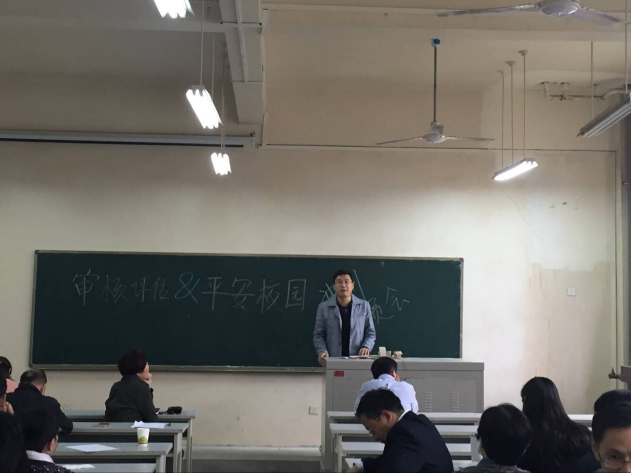抽取审核。告诉大家只有团结一致,用心去做,树立良好的态度,认真负责,有担当,勿存在侥幸心理,每一位老师都要做好加班加点的准备,这样才能做好审核评估的各项工作。在指阐释了审核评估的重要性之后,张老师告诉大家也要讲学院办公室的卫生打扫干净,为迎接审核评估做好优良氛围,并告诫各位代课老师,要引导学生上课前排就坐,带笔本和课本,上课制止学生玩手机,老师本人也要带教案等具体细节。同时老师还要熟悉审核评估的教师手册,以备不时之需。张老师告诉大家今年还是学校建设平安校园的日子,各位老师要提高警惕,具有安全意识,建设好学校安全环境。再次:王鹏副院长审核评估做了更加详细的补充和说明,告知专家进校的时间,专家听课应该注意的事项,上课时间观念和实验室坐班制度等。最后,高嵩院长做了总结性发言,号召大家铭记学院的嘱托和各自的分工职责,用心,尽心完成此次审核评估。