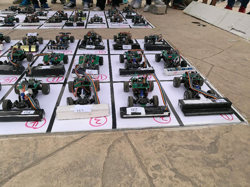 积极展开展智能车制作活动,正是响应国家号召,大力推动大学生开展创新创业活动。之后赵志升老师宣布比赛正式开始。本次比赛较往届采用了全新的比赛方式,分为初级和高级赛道两种模式。在此次比赛中,只有跑完初级赛道后,选手们才能继续进行高级赛道的比拼。高级赛道与初级赛道相比,增加了赛道长度和一些不规则形弯道。比赛过程正值下课放学,路过经纬广场的同学们对比赛产生了极大的兴趣,纷纷驻足观看。