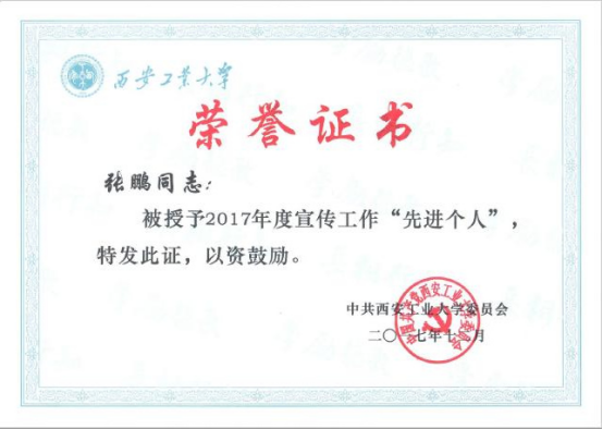 在此次年会中获得集体奖一项,即2017年度宣传工作“先进集体”;个人奖二项,分别为:张鹏荣获2017年度宣传工作“先进个人”,赵志升荣获2017年思想政治教育研究会征文活动三等奖。