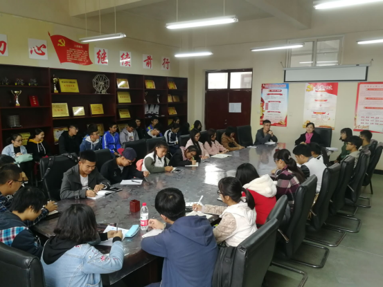 2017级在工5-402会议室组织召开班干部培训会议。邀请学院党委副总书记姚敏茹老师主讲,17级辅导员夏开成、赵思瑶老师和2017级全体班长、团支书参加了本次会议。