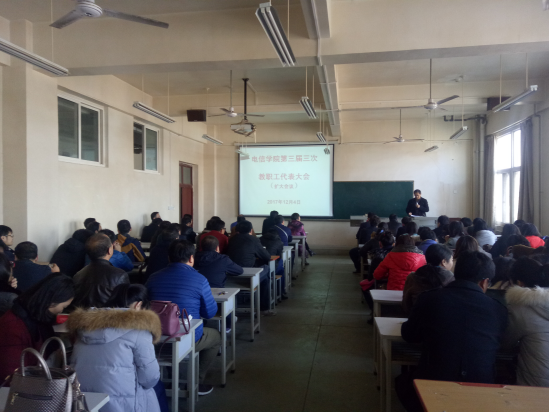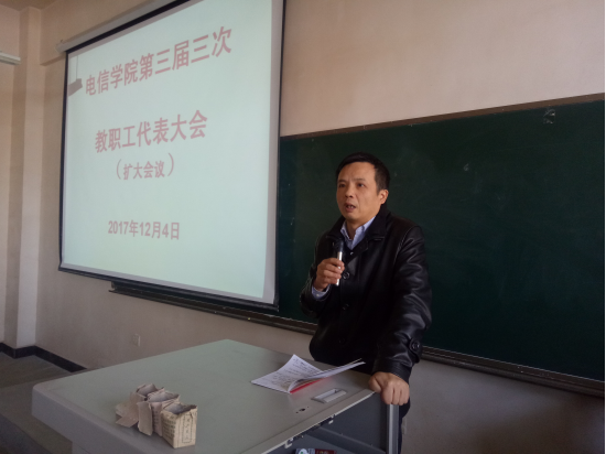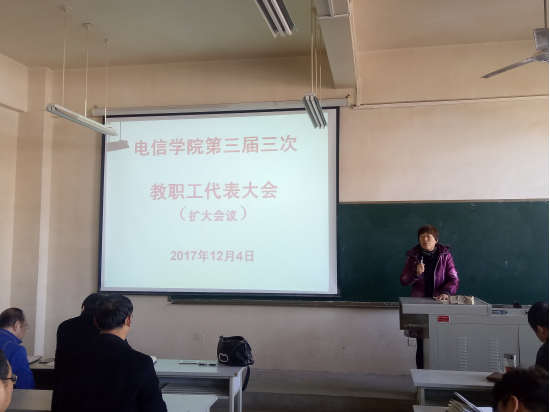 第三届三次教职工代表大会(扩大会议)在工科5楼406教室隆重举行,学院全体领导及教师参加会议,工会主席张海宁老师主持会议。