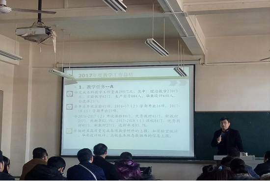 副院长王鹏做了教学工作报告从教学任务、教学秩序、教学研究及成果、大学生科技活动等10个方面对学院2017年的教学工作进行了系统总结,又从保运行、建制度、重建设、促创新、拼认证等5个方面对学院2018年的教学工作规划进行了重点介绍。同时,他又将提升学院工作品质的8个想法进行分享,获得与会教师的一致认同。